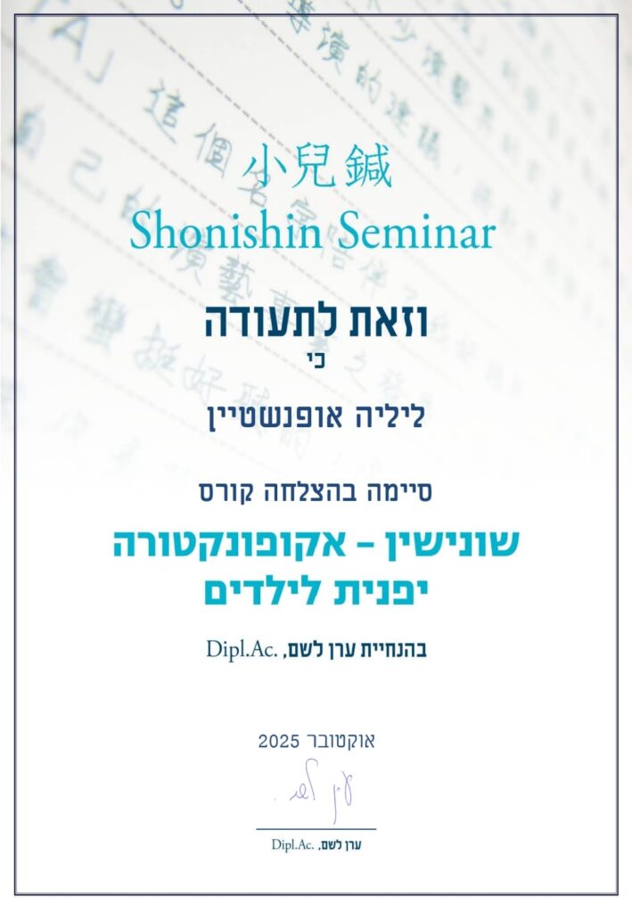 בשנה האחרונה הוספתי כלי חדש לקליניקה שלי – שונישין. שיטת טיפול יפנית לתינוקות וילדים.